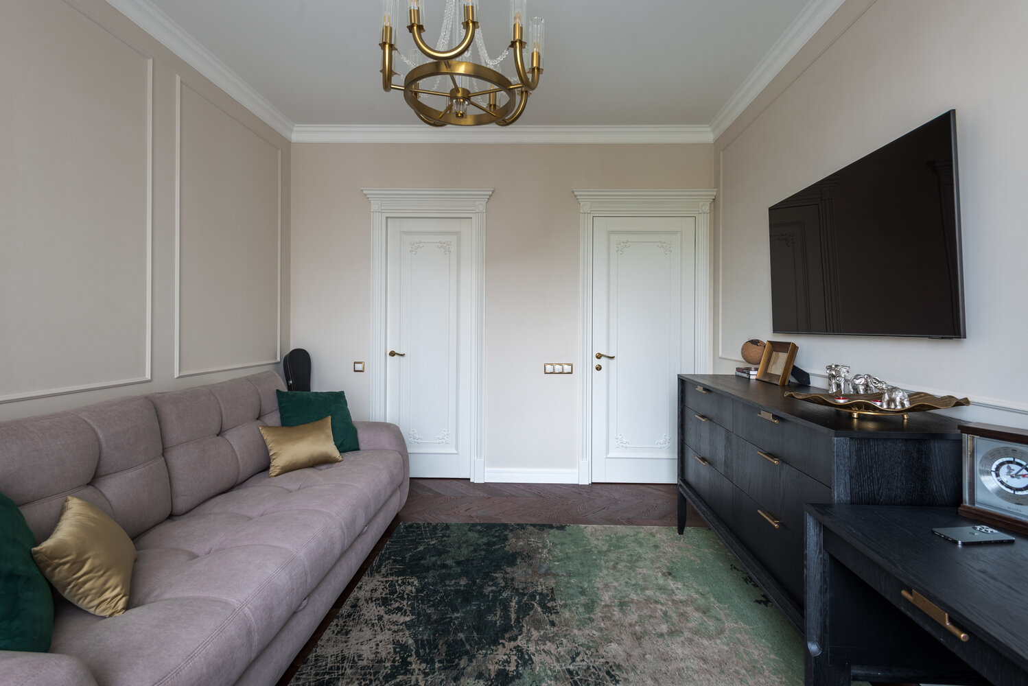 Трешка 89 м² с тремя гардеробными и балконом для кошкиДизайн